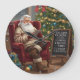 This humorous, relatable clock features a cozy scene of Santa Claus wearing a knit sweater and plaid pants, seated in a plush red armchair while reviewing his list on a digital tablet. Next to him is a chalk board with a tongue-in-cheek holiday wish: "Dear Santa, for Christmas I'd like... LESS MEETINGS & MORE PIZZA." The scene is set in front of a brightly decorated Christmas tree. The design may look real due to the high detail and three-dimensional texture in the artwork.