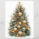 Cute letter to Santa with beautiful red and gold Christmas ornaments, red flying Reindeer, gold stars and pine branches. Reverse has a beautiful Christmas Tree decorated with gold ornaments and gold Poinsettia flowers.