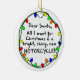 Funny motorcycle ornament for Xmas. Dear Santa, all I want for Christmas is a bright, shiny, new motorcycle! Hilarious humour design, surrounded by multi-coloured Christmas lights.