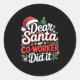 Dear Santa My Co-worker Did It Funny Christmas Cow Classic Round Sticker