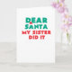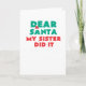 Dear Santa My Sister Did It Funny Christmas Card