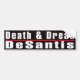Large white text on black. Easy to read at a distance. Refers to his mishandling Covid and other issues in Florida. "Death and Dread Desantis." From Balance America.