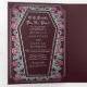 Make a bold statement of eternal love. This gothic wedding invitation features ‘Till Death Do Us Part’ in a coffin-shaped frame, adorned with thorns, roses, and silver accents against a red background with your own QR code. Perfect for a hauntingly romantic celebration! Personalise the text, font, and background colour to suit your design preferences. Matching Items in our shop for a complete party theme. Please note that the silver on the invitation is NOT real foil and is printed in flat colours