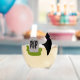 This awesome stemless wine glass features an image of the Grim Reaper, also known as Death, created using vectors. He stands menacingly in a cemetery holding his scythe in his bony white hand. His sunken purple eyes and demonic grin are only just visible underneath his black cloak. In the background there is a gravestone with RIP painted on it in creepy black.
