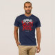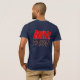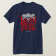 Death Metal Graphic Logo on Navy Blue T-Shirt with back-to-back graphic designs on both sides of the shirt.
