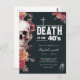 R.I.P. to the decade of decadence! This stylish floral design is a fun 50th birthday invitation, or you can easily customise the text for another age. Featuring a gothic skull with pale apricot, black and burgundy flowers on a deep black background. Text "Death of her 40's" (customisable) and space for all your party details.