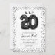 Mourn your 20’s in style with our unique adult birthday invites. Showcasing a sharp, white background featuring black helium balloons spelling out 'RIP to my twenties', this invitation adds a fun spin to milestone birthdays. Accented with black glitter edges and a user-friendly birthday text template, you can easily personalise this invitation to reflect your own style and celebration plans.