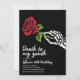 This unique birthday invitation captures the playful yet poignant theme of "Death to My Youth" with striking visual flair. The design features a skeleton hand, a symbol of the passage of time, gracefully holding a vibrant rose, representing the beauty and vitality of youth. The contrast between the skeleton and the rose beautifully illustrates the transition from youth to a more mature phase of life. The background is subtle yet sophisticated, complementing the striking central image without overwhelming it. This invitation is perfect for anyone looking to celebrate a milestone birthday with a touch of humour and a deep appreciation for the journey of life.