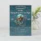 Mourn the end of your thirties and celebrate the start of your forties with this Death to My Youth Skull Kraken 40th Birthday Party Invitation. This unique, fully customisable invitation is perfect for a 40th birthday party with a spooky, fun nautical twist. Featuring a skull Kraken (aka large evil octopus lurking in the deep sea) with blue and silver tones paired with the bold phrase "RIP 30s" against a dark, underwater background, this design combines gothic and vintage elements with a modern flair. On the back of this double-sided invitation, you'll find a funny illustration of a skeleton and a shipwrecked ship wheel at the bottom of the ocean. The invitation reads "let's mourn the thirties sinking deep into the abyss"