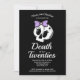 Death to My Twenties birthday party invitation with a dark coquette aesthetic theme to celebrate a woman's 30th birthday. Black design with white letters, a skull, bows, and the words "death of youth". Personalise it with your party details and RSVP information.