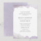 An elegant wedding invitation design featuring a light purple watercolor painted border on a white background designed by Shelby Allison.