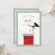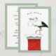 Creative Christmas holiday themed baby shower invites featuring stork in a Santa hat, delivering a newborn.