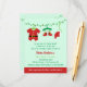 Invite friends and family over for a Christmas baby shower with this cute invitation! It has a little Santa baby outfit hanging over the Christmas mistletoe decorations. The outfit includes the red baby creeper with black belt, a pair of shoes, and a red hat. Personalise easily with your party details.