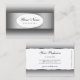 Make a lasting impression with this elegant and quality business card design featuring silver grey and white ombre colours with fine silvery oval frame and lines.