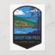 A vintage travel badge design of Deception Pass State Park with Whidbey Island and Fidalgo Island, in Washington State. USA