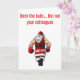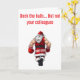 Bring some cheeky holiday humour to your greetings with this playful card! Featuring the bold text “Deck the halls, but not your colleagues”, this design shows a mischievous scene where a cartoon Santa accidentally (or maybe not so accidentally!) knocks out one of his elves. It’s a light-hearted, tongue-in-cheek twist on holiday stress that’s perfect for co-workers, office parties, or anyone who appreciates a good laugh during the festive season. Spread cheer, giggles, and a little harmless mischief with a card that’s sure to stand out!
