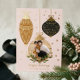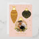 Deck the halls with our elegant and festive photo ornament holiday foil card. Our beautiful holiday foil card features three elegant hanging ornaments decorated in a gold foil design. Add your photo to the centre holiday ornament. Gold foil snow and stars are added along with foil ribbons and cranberries. Customise with the year, family signature, and holiday greeting. All illustrations are hand-drawn original artwork by Moodthology Papery.