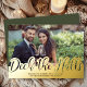 Deck the Halls, hand lettered, single photo luxury gold foil holiday card. The photo template is set up for you to add a horizontal photo and you can also add your personalised greeting. Bold handwritten typographic design with cool cut-out lettering which sits as a gold foil overlay at the bottom of your picture.