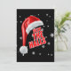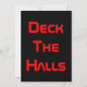This invitation features the phrase "Deck The Halls" in a Zing Rust Base print font with red coloured letters white outline under a Santa Claus Chirstmas hat with a collection of snowflakes in the background in this X-mas day style and theme. Printed on a classic, all around paper 17.5 pt thickness with an uncoated matte finish with an eggshell texture made and printed in the USA with "Deck The Halls" printed on the back.