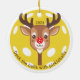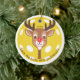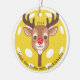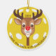 Deck the halls with pickleballs ornament. The reindeer's head and neck are in the shape of a pickleball paddle, while its red nose resembles a red pickleball. Standard yellow pickleball background. Personalise with a year. Keep the curved text as shown or customise with your own wording. It makes a perfect gift for pickleball enthusiasts. © Kimbellished, LLC