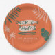 Deck the palms christmas tropical minimal modern contemporary fun colourful holiday party decor paper plate design. Modern orange, green and pink colorway.