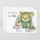 We're Decking New Halls 2 in 1 Christmas postcard and moving announcement. Festive christmas front door, decorated with holly wreath and garland. The scene is set with cosy home elements including glowing lantern, christmas tree, snowman and sledge. It is lettered with "We're Decking new halls" and the rest of the wording is fully editable and easy to personalise with your season's greeting, such as wishing you a Merry & Bright christmas from our new home followed by your new address and names.