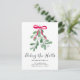 Are you moving to a new home this festive season? This festive moving announcement postcard lets family and friends know your new address. It is decorated with watercolor mistletoe, red ribbon, and "Decking New Halls" in stylish typography.