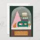 Embark on a festive journey of change with the "Decking New Halls" Snow Globe Holiday Moving Announcement Postcard. This unique and whimsical card features an enchanting snow globe illustration, offering a peek into a cosy mid-century modern living room scene, complete with pink Christmas tree and pet dog and kitty. The label on the snow globe presents a playful twist on the classic phrase, making it the perfect way to announce your move during the holiday season.
