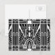 Postcard in a geometric pattern based on Art Deco architectural details - white on a black background