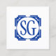 A square business card template with initials placed inside a decorative box. In this version the initials are in the Integrity bold font. Name and profession/job title along with telephone, email and website address in black on the reverse side on a white background, using variations of the Matt Antique font.