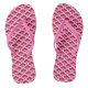 Flip flops in a Chinese scallop or wave pattern, traditional in textile and enamel work, in deep burgundy wine and shades of soft pink with deep rose pink accents