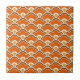 Ceramic tile in a Chinese scallop or wave pattern, traditional in textile and enamel work, deep mandarin orange, chocolate brown, and white, with accents of mustard gold