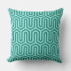 An Art Deco, Egyptian inspired geometric motif in turquoise blue on a pale aqua background outdoor pillow