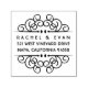 Add hand stamped charm to invitations, cards and correspondence with our art deco inspired return address stamp. Design features your name and address details in deco style typography, flanked by ornate vintage flourish illustrations. Coordinates with our Deco Flourish invitation collection.