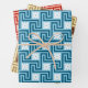 Deco Greek Key, Blue & White, Brown, Orange Wrapping Paper Sheet