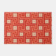 Doormat in an Art Deco Greek key or labyrinth pattern in deep and pastel coral orange accented with cream