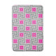 Art Deco Greek key or labyrinth pattern bath mat in light silver grey / grey and darker graphite grey accented with deep fuchsia pink