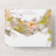 This design features a soft peach, green, and gold flower border on a soft brown blur arch. Personalised All-In-One invitations are a unique combination of both a beautifully printed custom invitation with an easy to tear off perforated RSVP postcard. And they are so easy to use! You simply fold, then seal the back flap with the three included clear stickers, and mail. And when your guests receive your custom invite, they just tear the perforated RSVP Card off and drop it back in the mail to you!