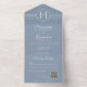 Deco Monogram Modern Dusty Blue QR Code All In One Invitation