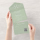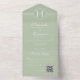 Deco Monogram Modern Sage Green QR Code All In One Invitation