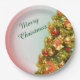 Decorated Christmas tree with merry christmas text Paper Plate