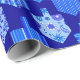 This bright, contemporary Hanukkah design features simple shapes and intricate patterns in a classic blue and white palette