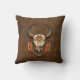 This unique design features a symmetrical bull skull with four feathers attached to the horns. Rough textures and natural colours gives the graphic a realistic look. The skull is decorated with native patterns including a stylised star in the centre of the forehead. The skull sits on a textured background that gives the pattern an aged leather look. This aggressive skull design is a stunning and unique Native American design.