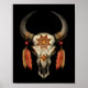 This unique design features a symmetrical bull skull with four feathers attached to the horns. Rough textures and natural colours gives the graphic a realistic look. The skull is decorated with native patterns including a stylised star in the centre of the forehead. This aggressive skull design is a stunning and unique Native American design.