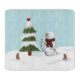 This Christmas Cutting Board features a snowman ready to decorate the Christmas Tree with lights while bunny rabbits watch.