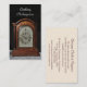 Particularly for dealers in antique clocks or other antiques, and repairers, restorers or makers. A card template on a basic white card stock with a customisable cream colour background on the reverse, and a photo of a decorative and ornamental vintage inlaid wood mantel clock on a lace tablecloth and against a dark background.
