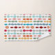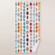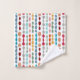 This towel set has a mid-century modern design of circles and ovals strung together in retro colours strung together on a field of white.