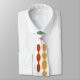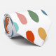 This necktie has a mid-century modern design of circles and ovals strung together in retro colours strung together on a field of white.