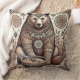 Artistic depiction of a bear adorned with intricate tribal patterns and symbols, seated with a bowl of honey, surrounded by foliage. An earthy colour scheme emphasizes the nature and traditional craft theme.