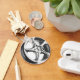 photo printed on large button with key chain. Picture looks very 3D however Just a 2D photo